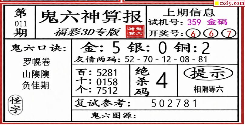鬼六神算2026011期3d图谜